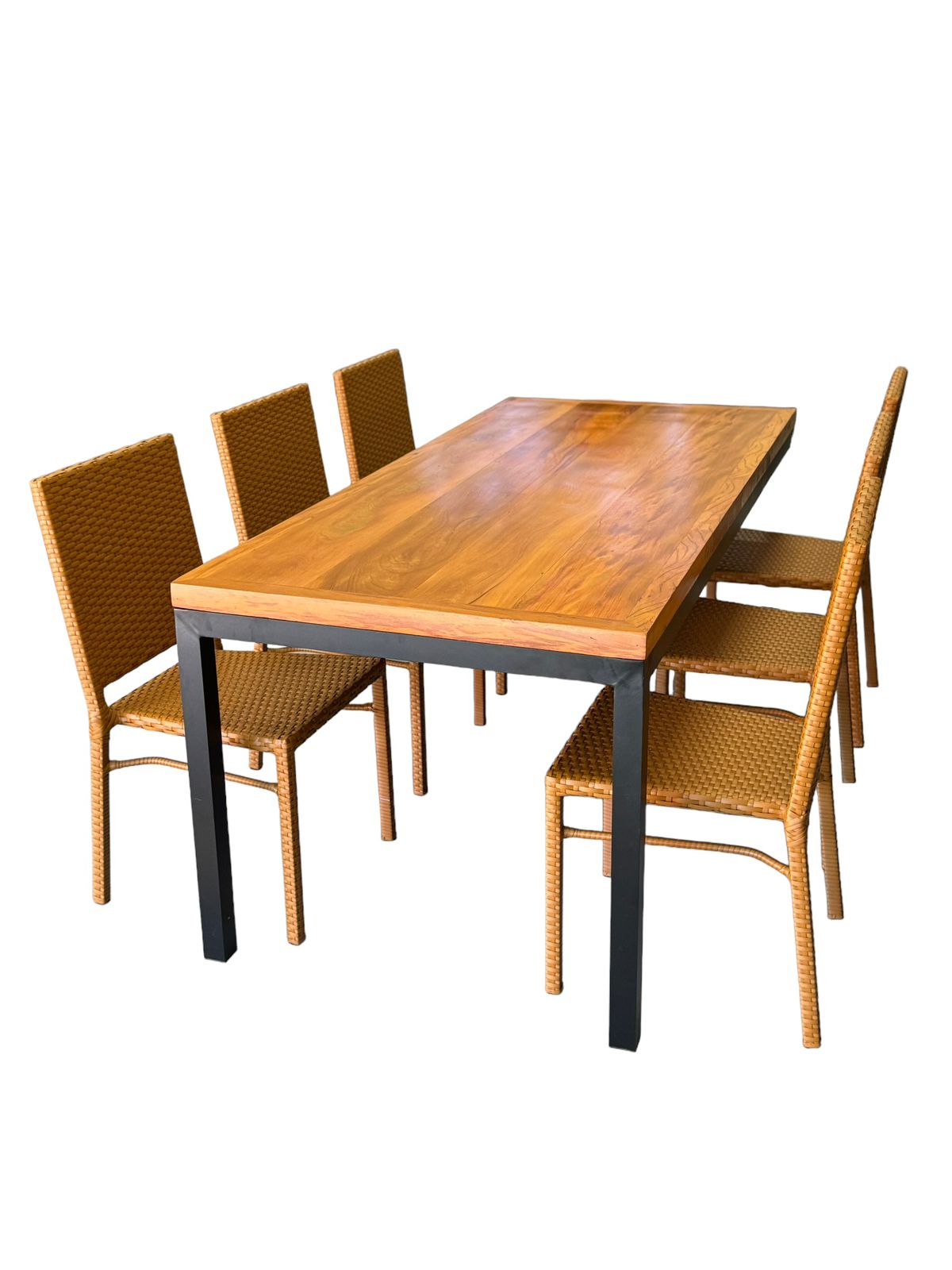 Conjunto composto por : 1 Mesa de madeira maciça ,feita em peroba rosa + 6 Cadeiras Arimateia Fiber Avelã