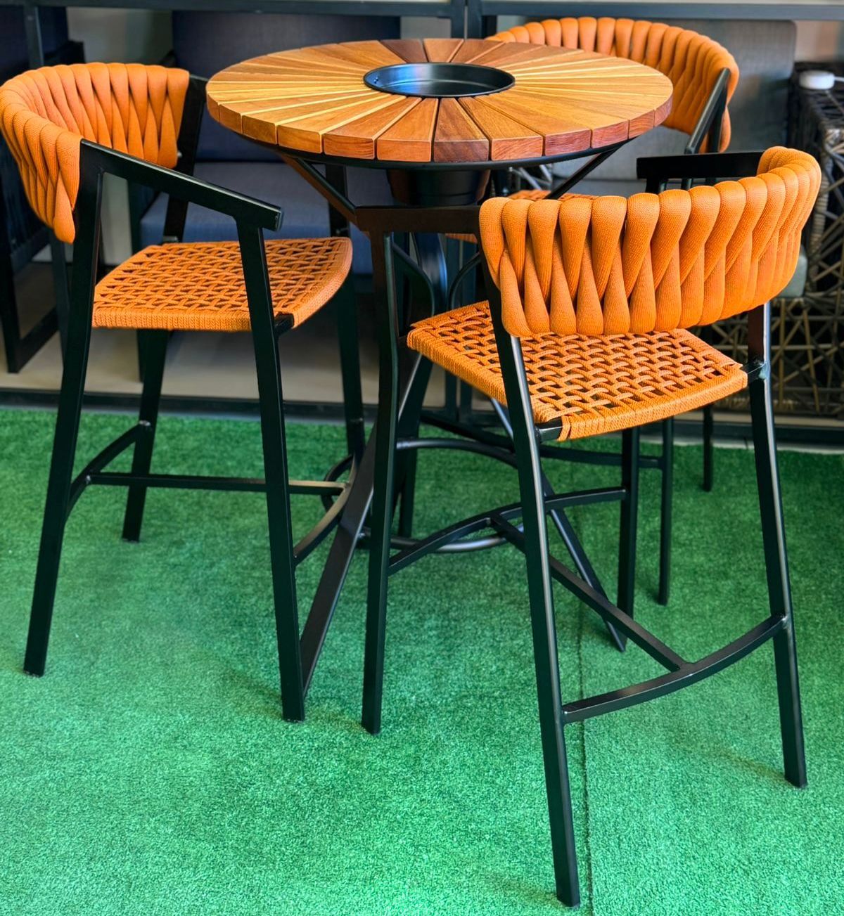 - Banquetas em tricô náutica e corda náutica com proteção UV