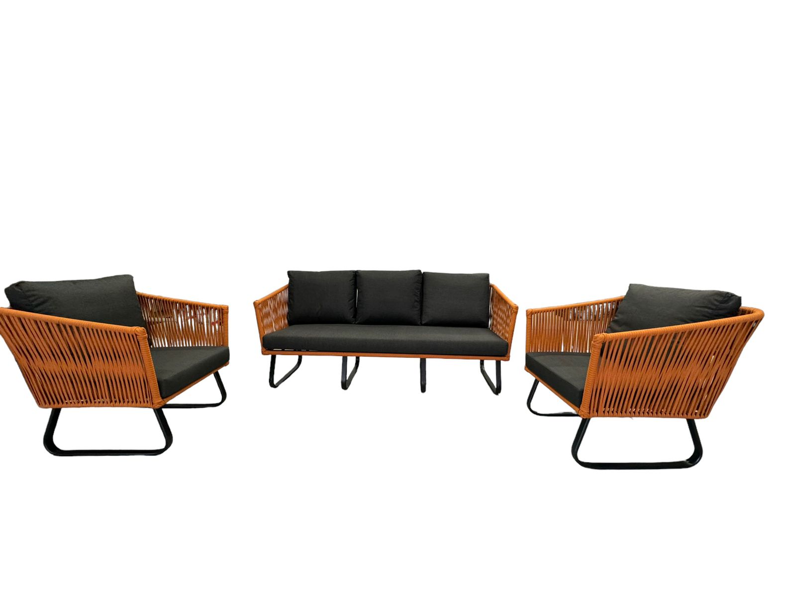 Conjunto composto por : 1 Sofá e 2 Poltronas ambos com Encosto e Acento no Tecido Linho Preto grafitte
