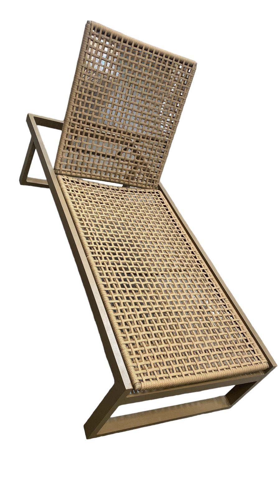 Nossa Espreguiçadeira Corda Náutica Marraquete é feita em alumínio com pintura eletrostática e tecimento em corda náutico com filtro UV, ela resiste condições externas.