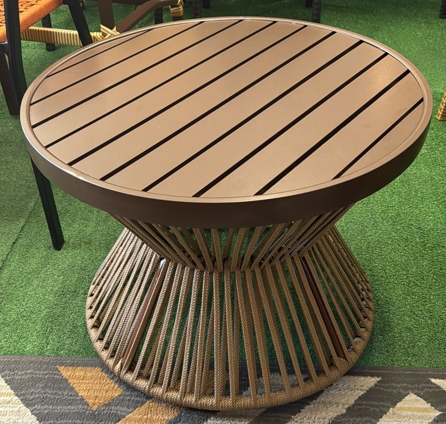 Esse modelo é feito em altíssima qualidade, feita em aluminio com pintura eletrostática, acabamento em corda náutica, tampo de alumínio ripado.